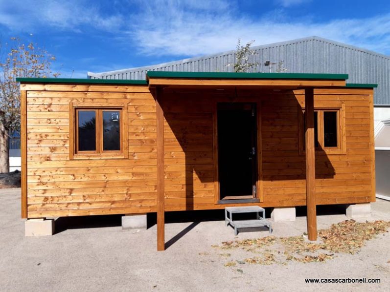 Es una casa de madera económica prefabricada transportable. Está fabricada en módulos con chasis de acero. La duración del montaje es de un día y se hace en el destino. Existe la posibilidad de fabricación a medida y múltiples terminaciones y distintos acabados tanto en el interior como en el exterior y aislamiento reflexivo extra.