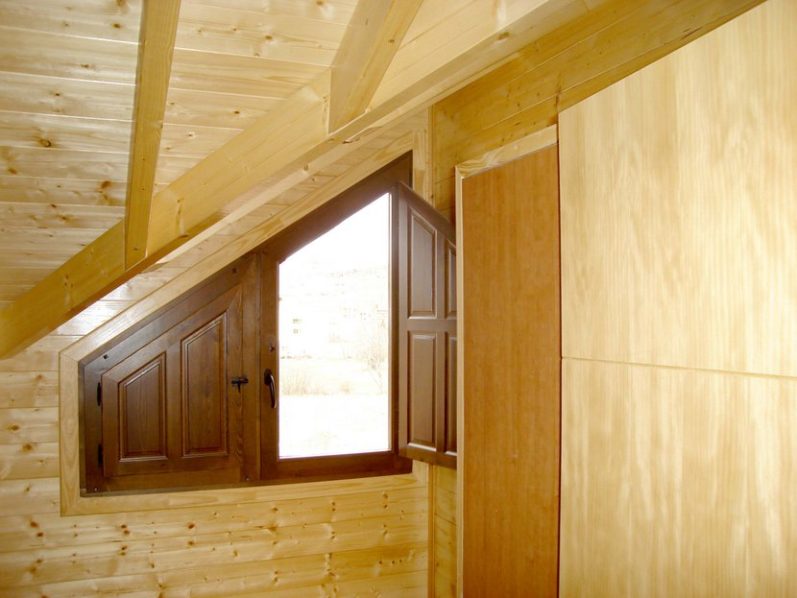 El acabado interior se realiza con un machihembrado de abeto de 19 mm., clavado y encolado. También se puede ofrecer el acabado interior con tablero de yeso laminado.