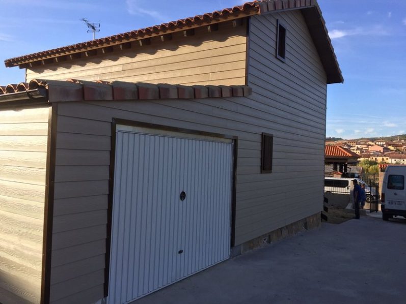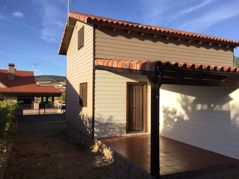 Los cerramientos exteriores se realizan con un tablero de soporte de tablero estructural de 18 mm. Sobre las paredes exteriores se coloca un esquelétaje de madera tratada de pino de 100 a 50 mm., de espesor y se rellena los huecos con aislante de fibras, del mismo espesor. A continuación se coloca una tela impermeable y transpirable al vapor de agua. Sobre esta tela colocamos un esquelétale de 20 mm., en posición vertical, formando una cámara de aire ventilada.